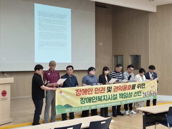 장애인인권및 권익옹호를 위한 장애인복지시설 책임성 선언 식 페이지 정보 작성자관리자 댓글 0건 조회 189회 작성일 25-05-31 12:53 본문 장애인인권및 권익옹호를 위한 장애인복지시설 책임성 선언 식 참석해주신 우리 원장님들 , 종사자분들감사합니다 ! 목록 이전글2025년 4월 1일 임시이사회 25.05.31 다음글20250530 상반기 종사자 인권교육 25.05.31 댓글목록 댓글목록 등록된 댓글이 없습니다.