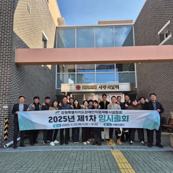 제1차 임시총회 (강릉 사랑의 일터 ) 페이지 정보 작성자관리자 댓글 0건 조회 187회 작성일 25-12-06 11:34 본문 11월 20일 강릉 사랑의 일터 제1차 임시총회장소 협조해시고 물심양면 지원해주신 최종원 원장님께 감사드립니다 목록 이전글협회 하반기 종사지인권교육 25.12.08 다음글2025년 중증장애인생산품 박람회 강원협회 참여 25.11.08 댓글목록 댓글목록 등록된 댓글이 없습니다.