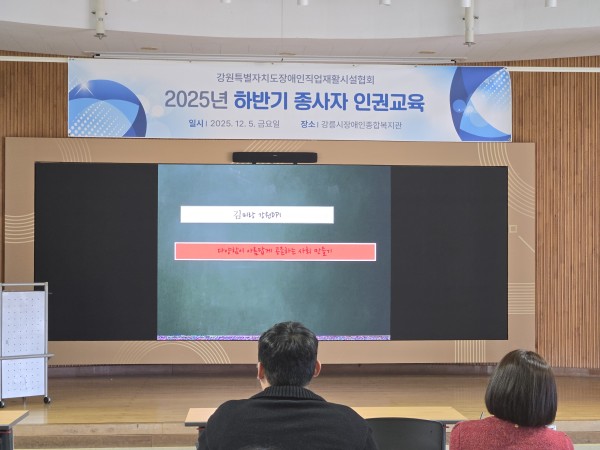 협회 하반기 종사지인권교육 페이지 정보 작성자관리자 댓글 0건 조회 192회 작성일 25-12-08 15:42 본문 협회 하반기 종사자인권교육장소:강릉 장애인종합복지관 대강당 일시 :2026.12.5 오후 1시30분강사: 김미랑 DPI참석해주신 강원협회 종사자분들께 감사드립니다! 목록 이전글제10회 강원 직업재활의 날 기념식 및 생산품 홍보전시회 25.12.08 다음글제1차 임시총회 (강릉 사랑의 일터 ) 25.12.06 댓글목록 댓글목록 등록된 댓글이 없습니다.